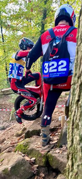 Es war alles andere als ein Nuller-Trial, bei dem auch ein 5er verziehen wurde bzw. ausgeglichen werden konnte. Die Sektionen wurden so gelegt, dass sie sowohl für erfahrene Spitzenfahrer als auch für weniger routinierte Teilnehmende zu befahren waren. Die Streckenbauer achteten darauf, dass jede Klasse passende Spuren erhielt, um einen fairen Wettkampf zu ermöglichen. Die Fahrer konnten sich auf drei Mal zehn Natursektionen mitten im Wald freuen – ein Dank an die Veranstalter, die das möglich gemacht haben.