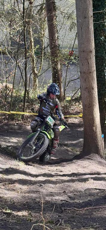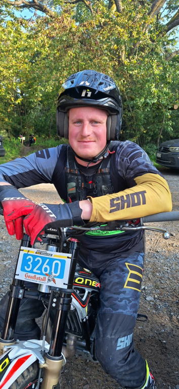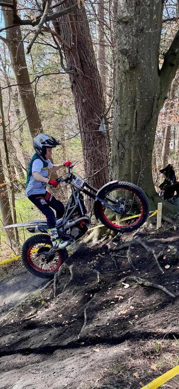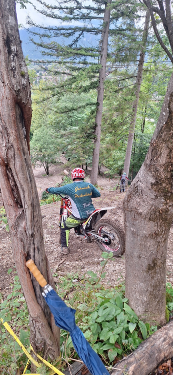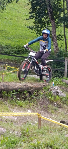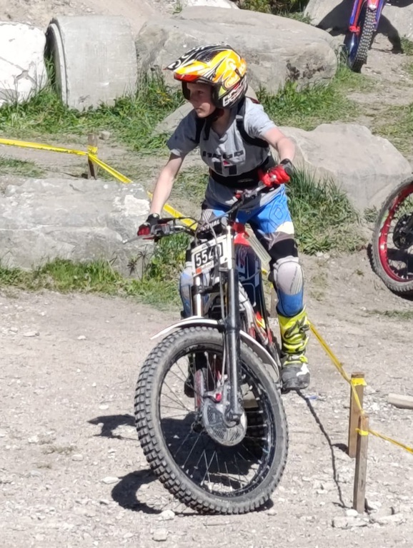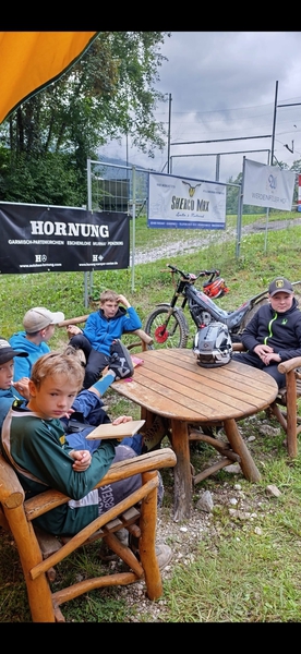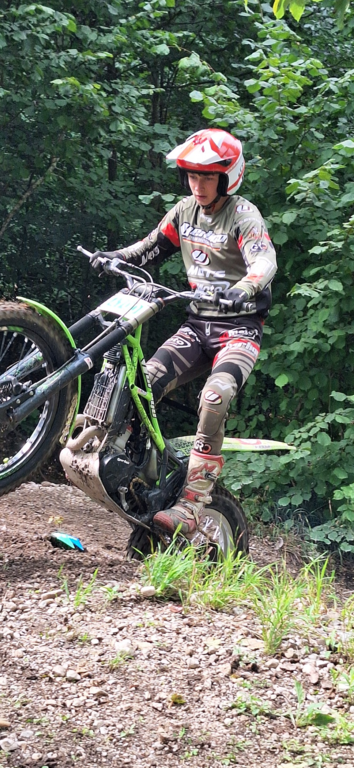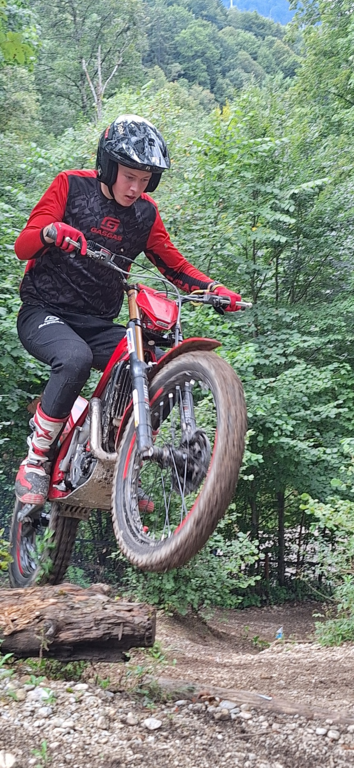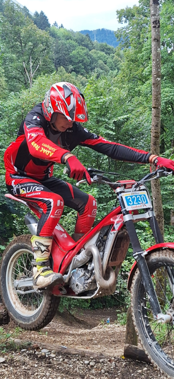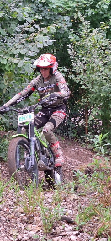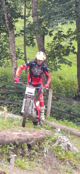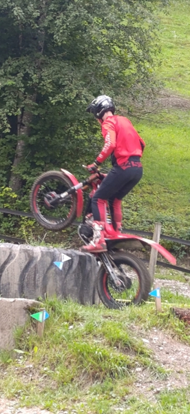Tobias Janitschke vom AC Garmisch-Partenkirchen e.V. ging in der zweithöchsten Spur an den Start und hat sich viel vorgenommen. Da Tobias erst 15 Jahre alt ist, muss er den Wettbewerb noch mit der 125er bestreiten. Sein Minder, der ihn beim Rennen unterstütz und hilft, ist Jonathan Heidl, "Joni". Die Startzeiten wurden ausgelost und nach Klassen ging es dann an den Start. Tobias hat gleich die ersten Sektionen mit 1-0-0-1 befahren, in der fünften Sektion dann 5-Fehler-Punkte aber in Sektion sechs und sieben wieder jeweils 0 Fehler. So konnte er von 12 Sektionen auf seinem Punktekonto 24 vermerken. Allerdings ist er in der drittletzten Sektion gestürzt, und hat sich an der Hand und Oberschenkel verletzt. Außerdem musste in der Pause das Motorrad repariert werden, womit er dann mit 30 Minuten Verspätung in die 2. Runde startete. Er hat alles auf eine Karte gesetzt und hat Speed gegeben – er konnte die zweite Runde rechtzeitig im vorgegebenen Zeitfenster beenden (ohne Strafpunkte zu kassieren) und hatte hier dann 29 Fehlerpunkte. Am Samstag beendete er das Rennen mit 53 Fehlern gesamt und konnte einen sehr guten 6. Platz erreichen.