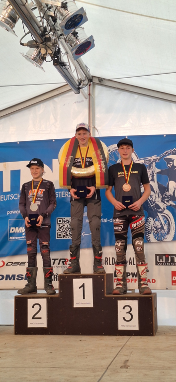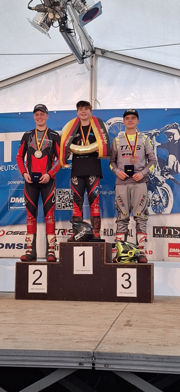 Beim DMSJ Deutschen Jugend-Trial-Pokal, der Klasse 4, erreichte Lorenz Frombeck auch das Podium. Er holte mit einem Sieg am Finaltag noch wichtige Punkte und schob sich nach vorne auf den 3. Platz. Benedikt Rieger, auch am Start, beendete die Meisterschaft auf Platz 14, von insgesamt 44 Mitstreitern in dieser Klasse, mit nur einem 3-Punkte-Unterschied zum Vorplatzierten.
