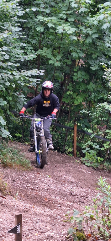Das klang nach einem spannenden Wettkampf. Tobias Janitschke (Klasse 2) hat am Samstag mit einem souveränen Lauf, bei dem er nur einen Fehler gemacht hat, den erste Platz und somit Gold gewonnen. Am Sonntag belegte er den 4. Platz mit 30 Punkten, was deutlich macht, dass die Sektionen anspruchsvoller waren. Anhand der Fehlerpunkte lässt sich erkennen, dass das Matschige und Rutschige nachmittags das Fahren deutlich erschwert hat.
