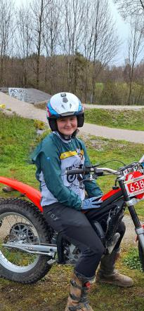 Maria (12) hat vor 3 Jahren das Trial fahren für sich entdeckt und ihr macht es richtig Spaß. Sie nimmt auch regelmäßig an Wettkämpfen beim Alpenpokal und der südbayerischen Meisterschaft in der roten Spur (6) teil.